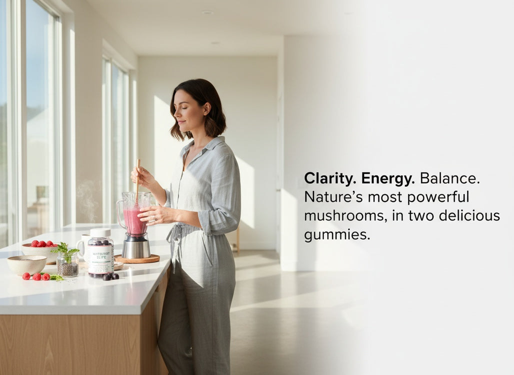 Clarity. Energy. Balance. Nature's most powerful mushrooms, in two delicious gummies.
